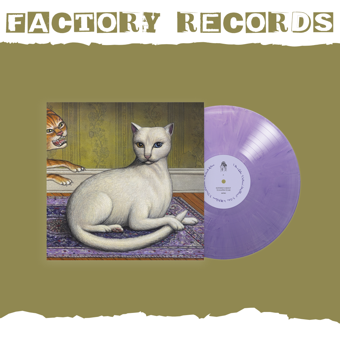 Nothing’s About to Happen to Me em vinil lilás de edição limitada com capa dupla, encarte impresso, encarte com as letras das músicas (8 páginas), diorama de móveis em destaque, cartela de adesivos e marcador de páginas.